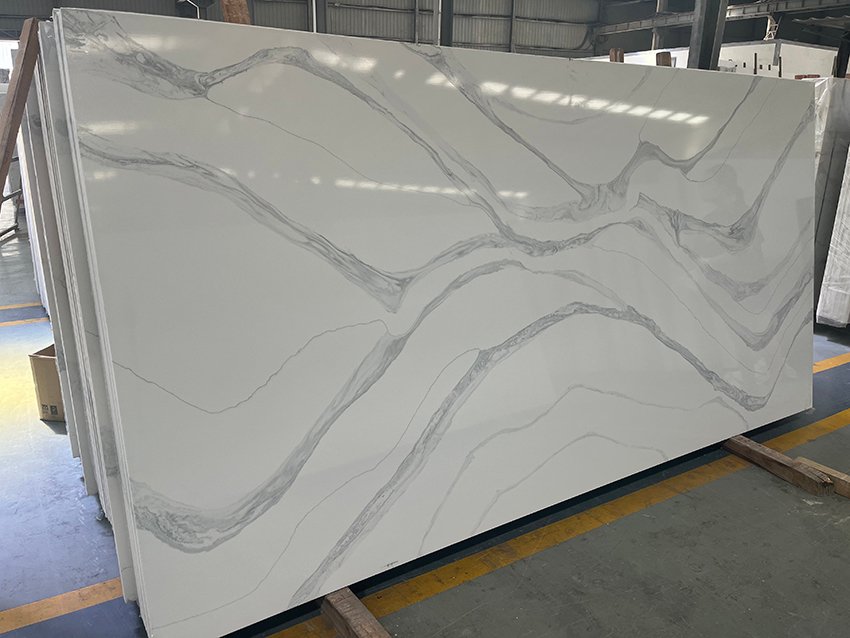Calacatta Quartz with Grey Veins Stone It can reproduce the cute texture and elegant appearance of Karakata quartz, enhancing the interior decoration style of your home. This fashionable and charming pattern can be used in shower rooms, window sills, dressing tables or bar countertops, kitchen countertops, and islands. Compared with fake quartz, real quartz has a higher cost and lower aesthetics, but is superior in durability and maintenance.