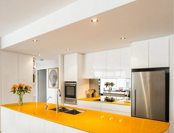 This large-sized, 100% pure yellow quartz stone slabs are assured to be of the highest quality. There are sorts of pure yellow and stellar yellow; welcome free contact with us.